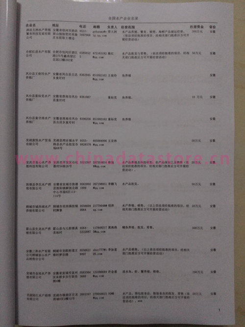 某省或直轄市 如上海、浙江水產(chǎn)企業(yè)名單  80% - 90% 600元 附贈一冊水產(chǎn)紙質(zhì)印刷品